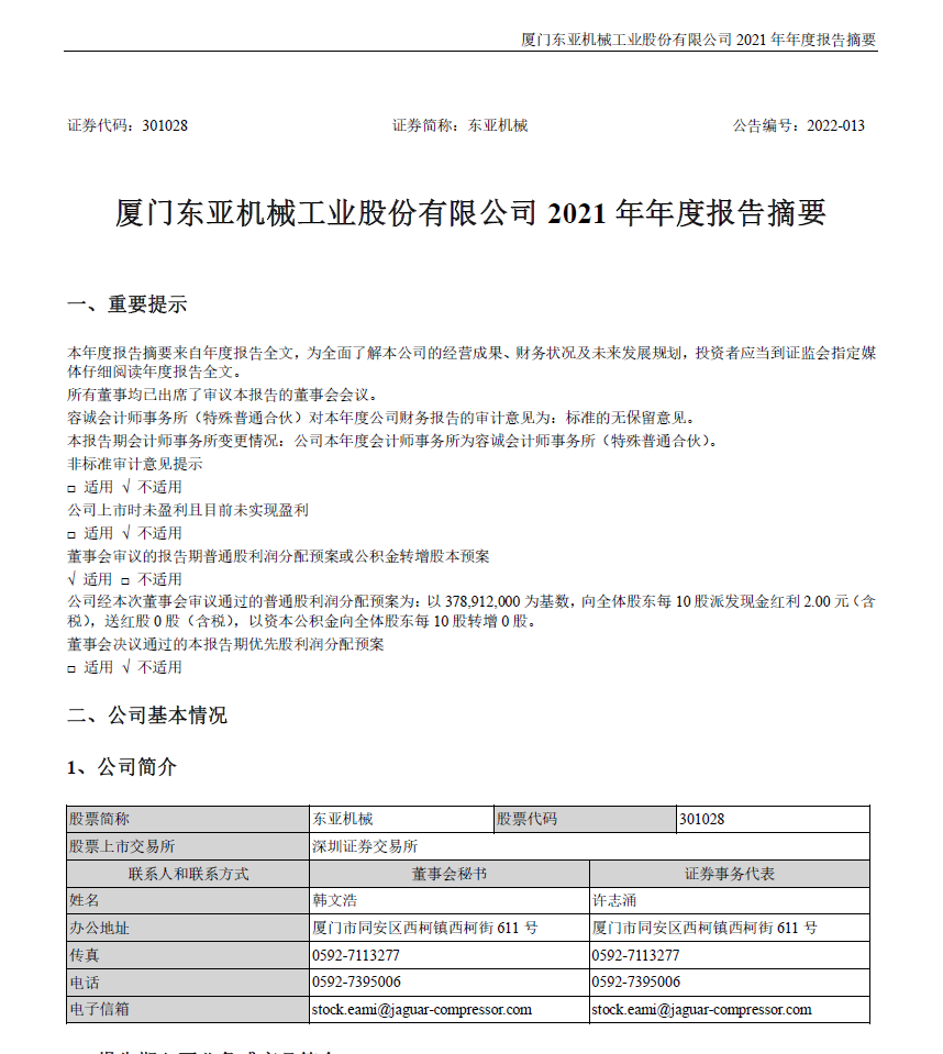 2021年年度報告摘要